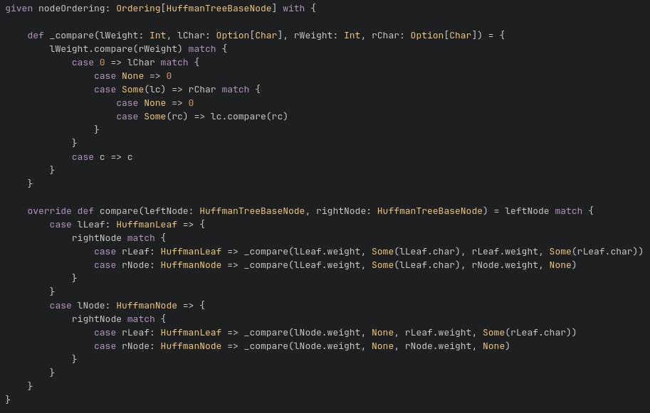I’ve never written something like this before. It was really interesting looking into the compression algorithm and a nice change in pace from my daily work. Struggling with the difficulties also forced me to dive deeper into the workings of Scala.