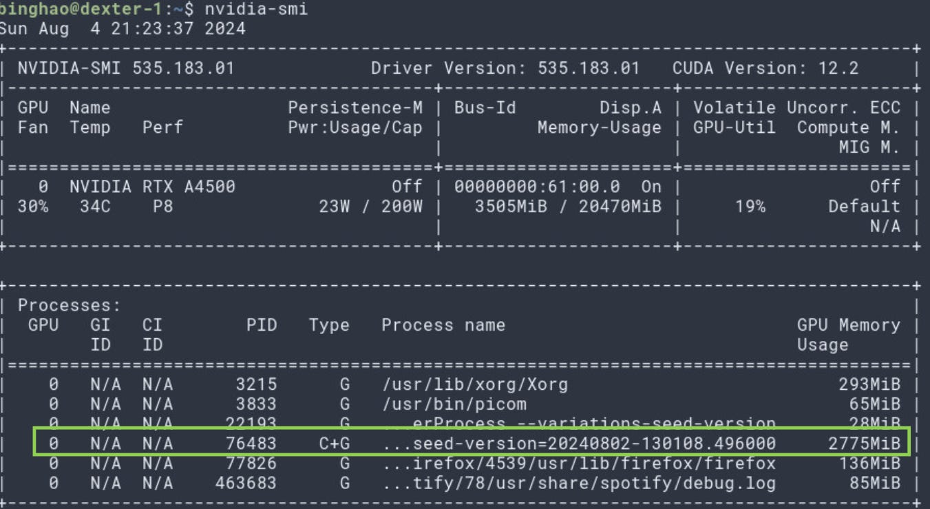 As you can see, the model is indeed loaded into my GPU.