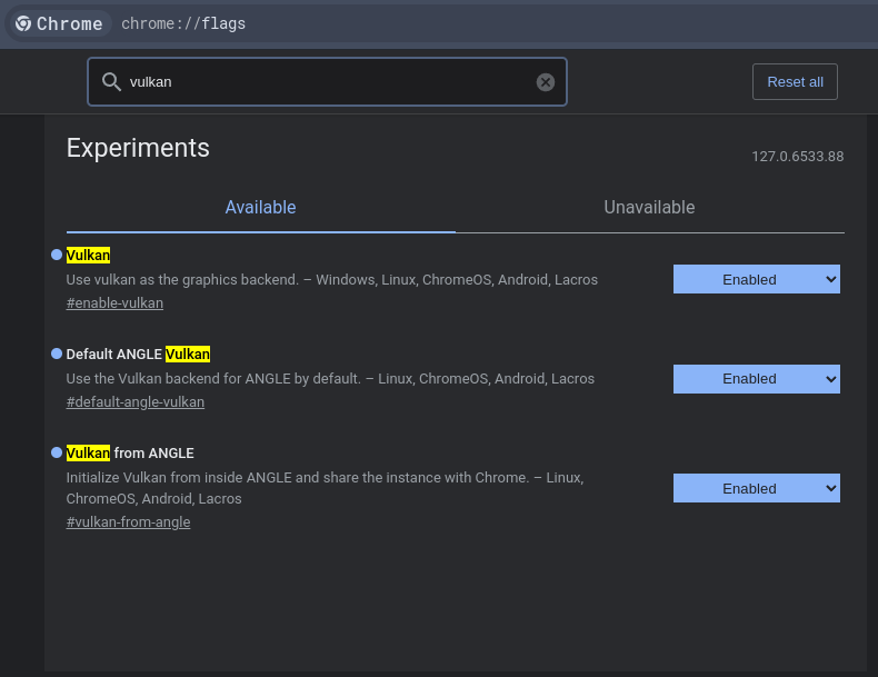Vulkanand just enable everything