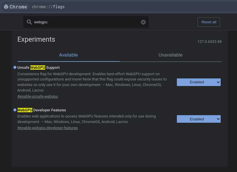 WebGPUand enable both featuresSearch for