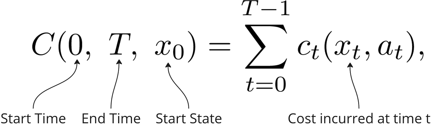 With our action, there also comes a cost, ct(xt, at).